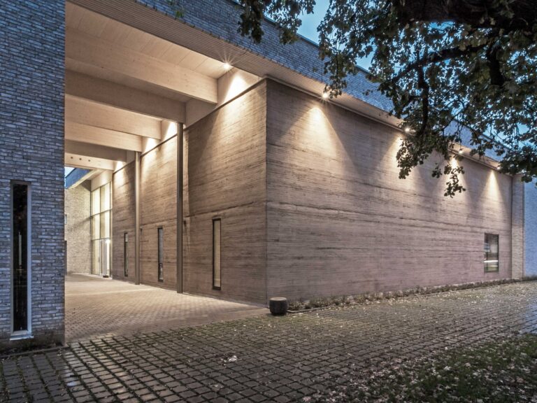 Das Gemeindezentrum wurde in konsequenter und nachhaltiger Architektur aus Stampflehm errichtet, der zusammen mit den Gemeindemitgliedern verarbeitet wurde. Ziel des Entwurfs war es, kirchliches Gemeindeleben in Verpflichtung zu seiner Tradition und den neuen gesellschaftlichen Herausforderungen über die Architektur einen angemessenen Ausdruck zu geben. Dazu gehört es eine angemessene Balance