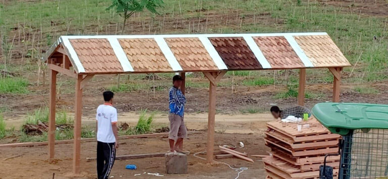 Üblicherweise kam in Indonesien Eisenholz als Dachschindeln zum Einsatz. Eisenholz ist auf der Liste der geschützten Arten und darf nicht mehr genutzt werden. Um eine nachhaltigere Alternative zu mittlerweile genutzten langsam wachsenden Harthölzern zu finden, werden im Rahmen unseres DBU Projekts fünf schnellwachsende Holzarten vor Ort in Zentralkalimantan auf