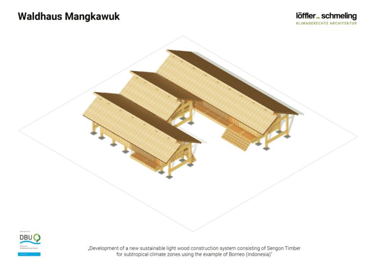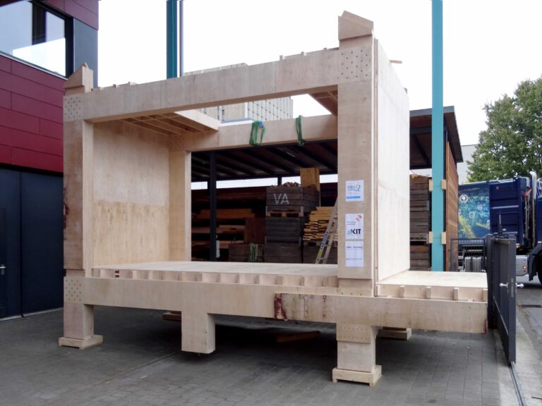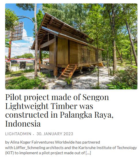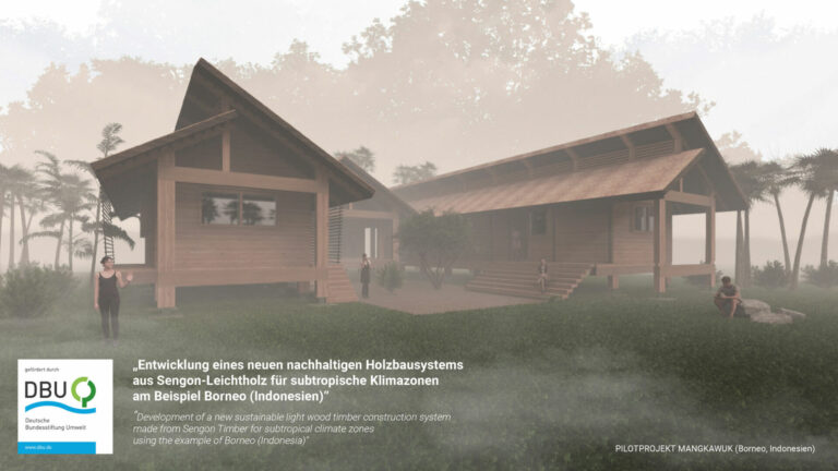 Mitte Oktober wurde in der Versuchsanstalt für Stahl, Holz und Steine des Instituts für Holzbau und Baukonstruktion am Karlsruher Institut für Technologie ein Muster für das Forschungsprojekt Borneo Indonesien aufgebaut. Dafür wurden Elemente vorgefertigt, die aus Funierschichtholz aus dem schnell nachwachsenden Sengon-Leichtholz bestehen. Dadurch konnten neue Erkenntnisse für einen