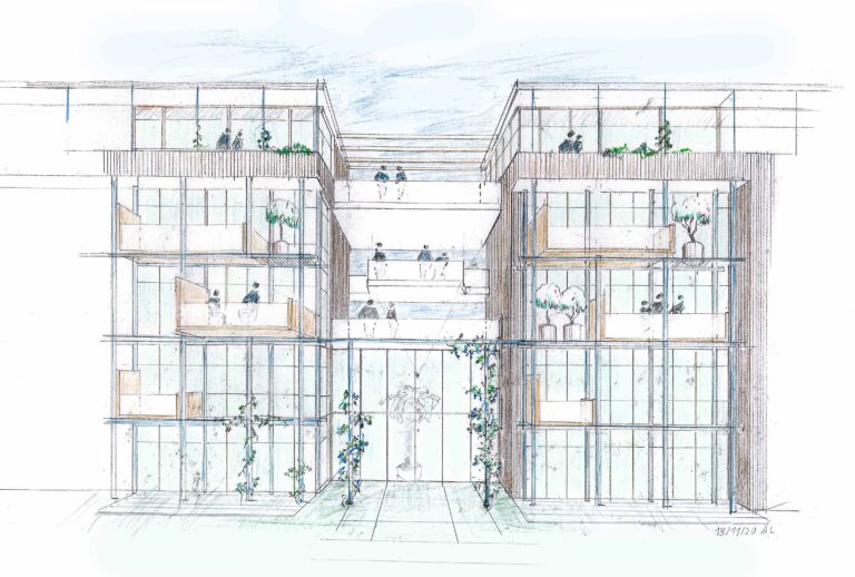 Die Entwurfsplanung schreitet voran. Die Sichtbeziehungen von innen und außen, aber auch innerhalb des Gebäudes, spielen in diesem Entwurf eine wichtige Rolle.