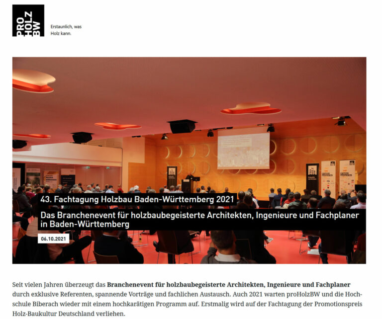 Einladung zur 43. Fachtagung Holzbau Baden-Württemberg 2021 – BV Balingen