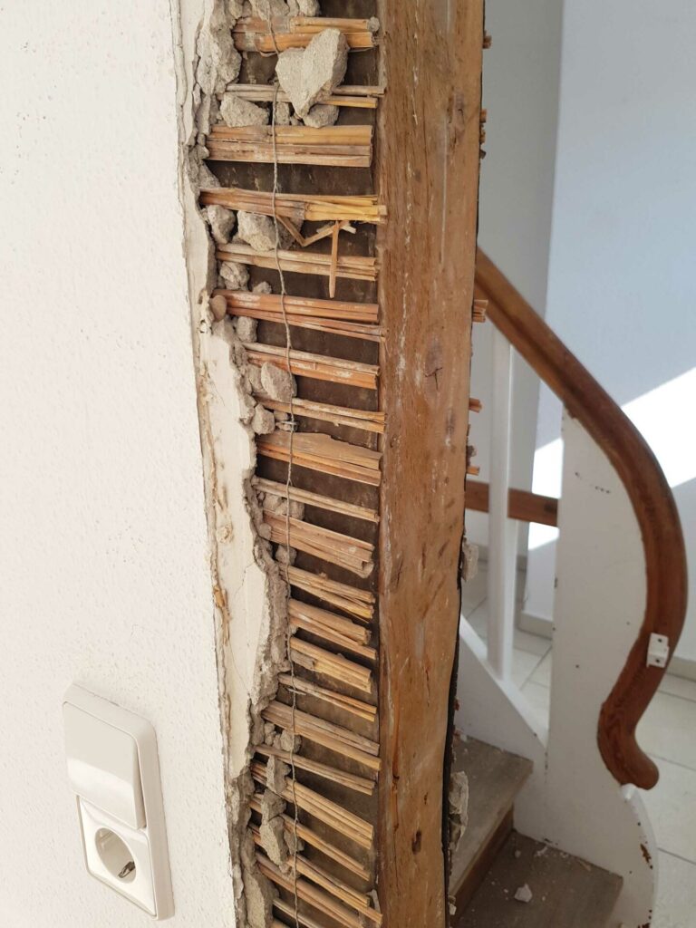 Der Umbau des Einfamilienhauses in Karlsruhe hat begonnen. Teilweise müssen die Wände und auch Decken abgerissen werden, um dem neuen Raumkonzept platz zu geben und die aktuell verschiedenen Fußbodenniveaus anzugleichen. Wir freuen uns, dass diese Baustelle und die energetische Sanierung nun begonnen hat.