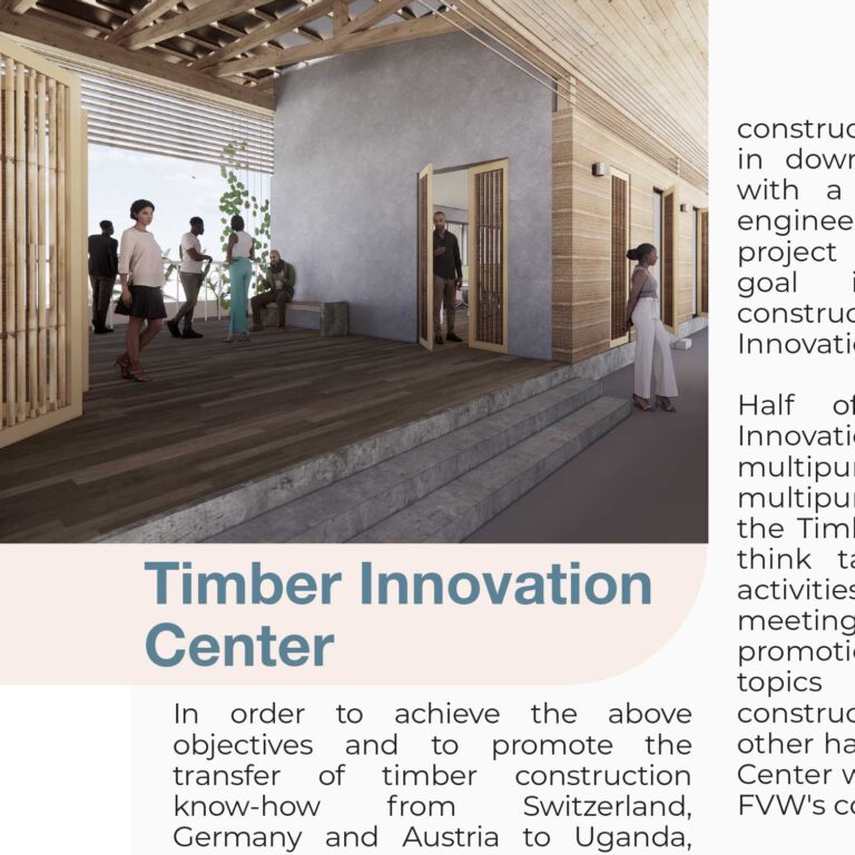 Das „Timber Innovation Center (TIC)“ in der Hauptstadt Ugandas ist nun fertiggestellt. Das Zentrum soll nachhaltigen Holzbau in Uganda und darüber hinaus in Ostafrika fördern, indem es Fachleute und Interessierte aus der Forstwirtschaft und dem Bausektor zusammenbringt und das Potential von Holz hervorhebt. Hier sollen Ideen, Erfahrungen ausgetauscht und Fachwissen