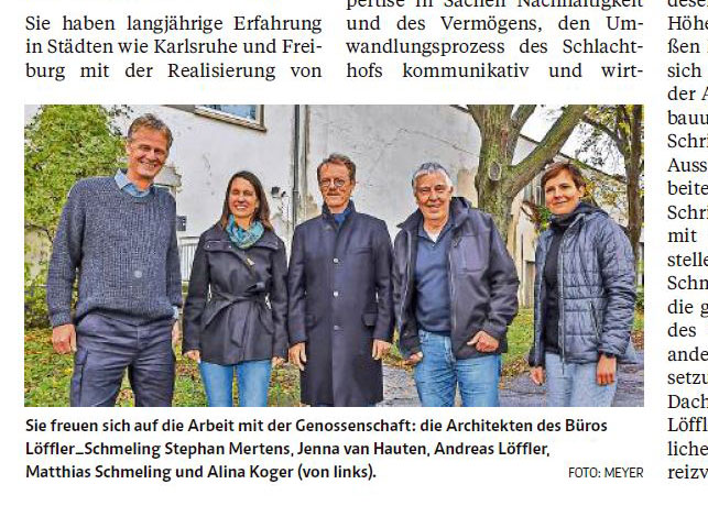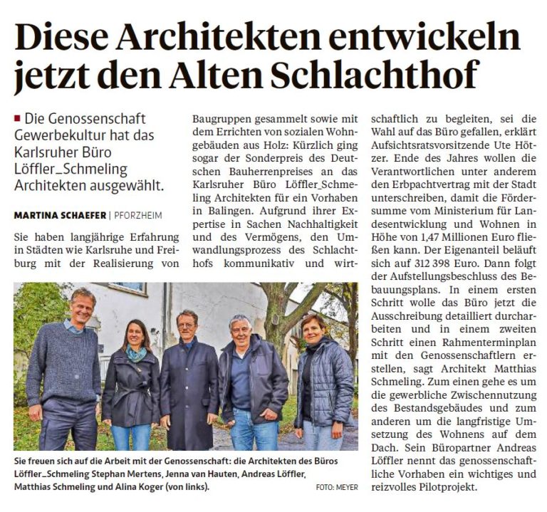 Am 25.10.2023 waren wir gemeinsam mit der Genossenschaft eingeladen, dem Planungs- und Umweltausschuss der Stadt Pforzheim den aktuellen Projektstand zum Alten Schlachthof Areal vorzustellen. Das Projekt, in dem Wohnen, Arbeiten, Soziales, Begegnung und Inklusion statt finden soll, ist auf große Zustimmung gestoßen. Die BNN berichtet hier über den Abend.