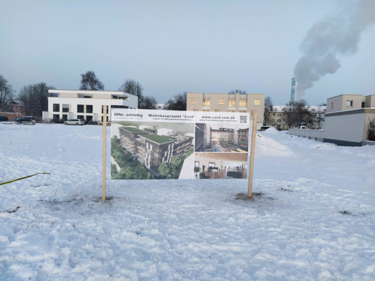 Seit Samstag, dem 17.Dezember, steht nun der Banner der Baugruppe auf dem Grundstück in Neu-Ulm. Schön, dass jetzt direkt vor Ort die Baugruppe mit dem