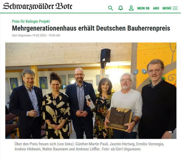 In der aktuellen Ausgabe der CUBE wurde ein Beitrag zu unserem Mehrgenerationenwohnhaus „erlebnisreich wohnen“ in Balingen veröffentlicht. Der komplette Beitrag ist hier zu finden. Mehr zum Projekt gibt es hier.