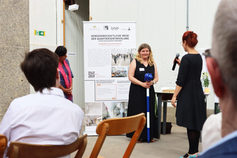 Am Montag, 19. Juni 2023, wurden die beispielgebenden Projekte der Patenschaft Innovativ Wohnen BW erstmals gemeinsam in einem „landesweiten Schaufenster“ im Alten Schlachthof Pforzheim vor- und ausgestellt. Mit der Patenschaft will das Land innovative Ansätze für das bezahlbare Wohnen sichtbar machen und zielgerichtet unterstützen. Unser Projekt Alter Schlachthof Pforzheim