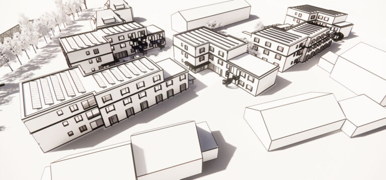Für das Projekt Mitarbeiterwohnheim in Heidelberg ist der Bauantrag eingereicht. Die 5 Häuser mit den 99 Wohneinheiten plus Gemeinschaftsräumen sind stark elementiert. Zwischen den Häusern entstehen Plätze, die Begegnung und ein Miteinander fördern. Nun steigen wir in die Werkplanung ein. Wir freuen uns sehr über dieses wunderschöne Holzbauprojekt.