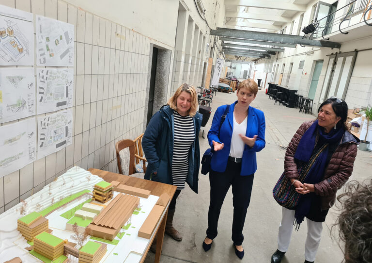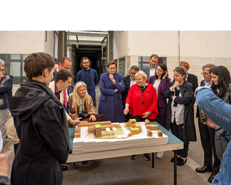 Am 28.05. hatten wir die Gelegenheit, Frau Geywitz sowie weiteren Bundestagsabgeordneten, Kommunalpolitikern und Gemeinderatskandidaten die Entwicklungen des Schlachthof Areals anhand des Modells vor Ort vorzustellen. Die Ministerin zeigte sich begeistert von der Bestandsstruktur und den Umbau- und Neubauplänen. Besonders die geplanten innovativen und sozialen Wohnformen seien von hoher Bedeutung in