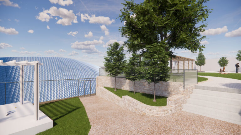 Neugestaltung der Freiraumflächen und der Tennisplätze 7 und 8: Der Traditionsverein Tennisclub Weissenhof erscheint auf seinen malerisch gelegenen Vereinsflächen über den Dächern Stuttgarts bald im neuen Look: Eine große 2-Feld-Traglufthalle erweitert die winterliche Nutzung des Vereins während der kalten Jahreszeit. Der Zugang zur Halle erfolgt komfortabel im Trockenen über das Vereinsgebäude.
