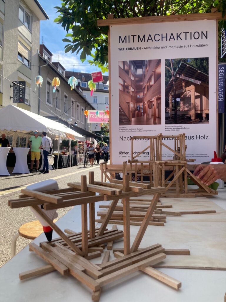 Das Waldstraßenfest am vergangenen Wochenende nahmen wir uns zum Anlass, unser 10-jähriges Bürojubiläum am Standort Waldstraße zu feiern. Bei einer tollen Mitmachaktion konnten Besucher aus Parkettstäbchen bauen, konstruieren und architektonisch experimentieren und dabei bestehende Modelle erweitern oder selbst Neue entwickeln. Drumherum wurde beim Straßenfest gefeiert und das herrliche, spätsommerliche Wetter