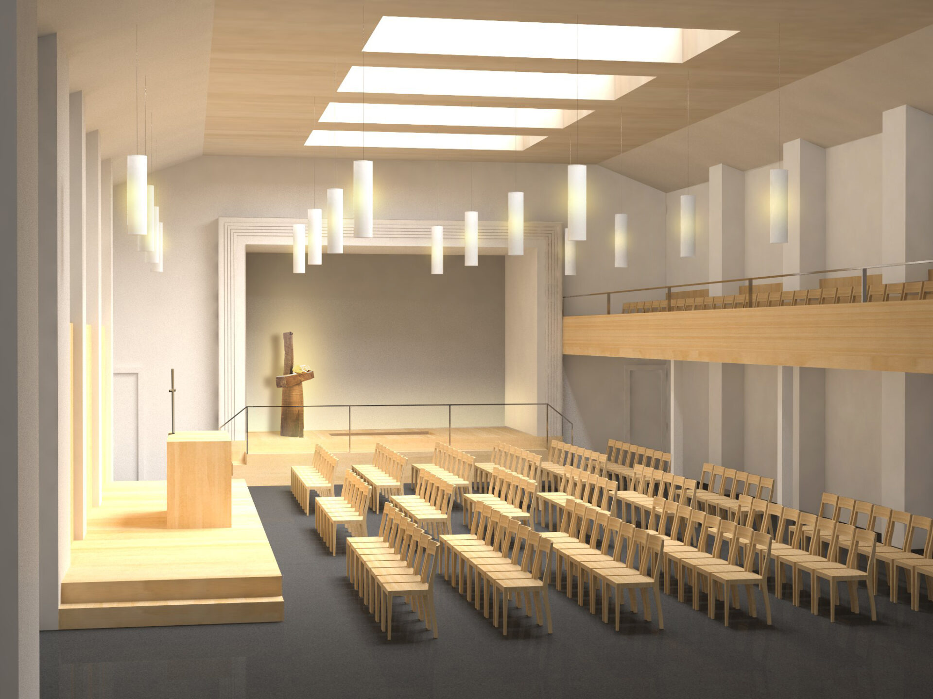 The design also envisages that the existing façade of the front building will be exposed again and an atrium will be created between the front and intermediate building. At the request of the congregation, the current layout of the community rooms on the first floor is to be restructured and reorganised to create several group rooms and a larger and more modern kitchen to enrich community life.