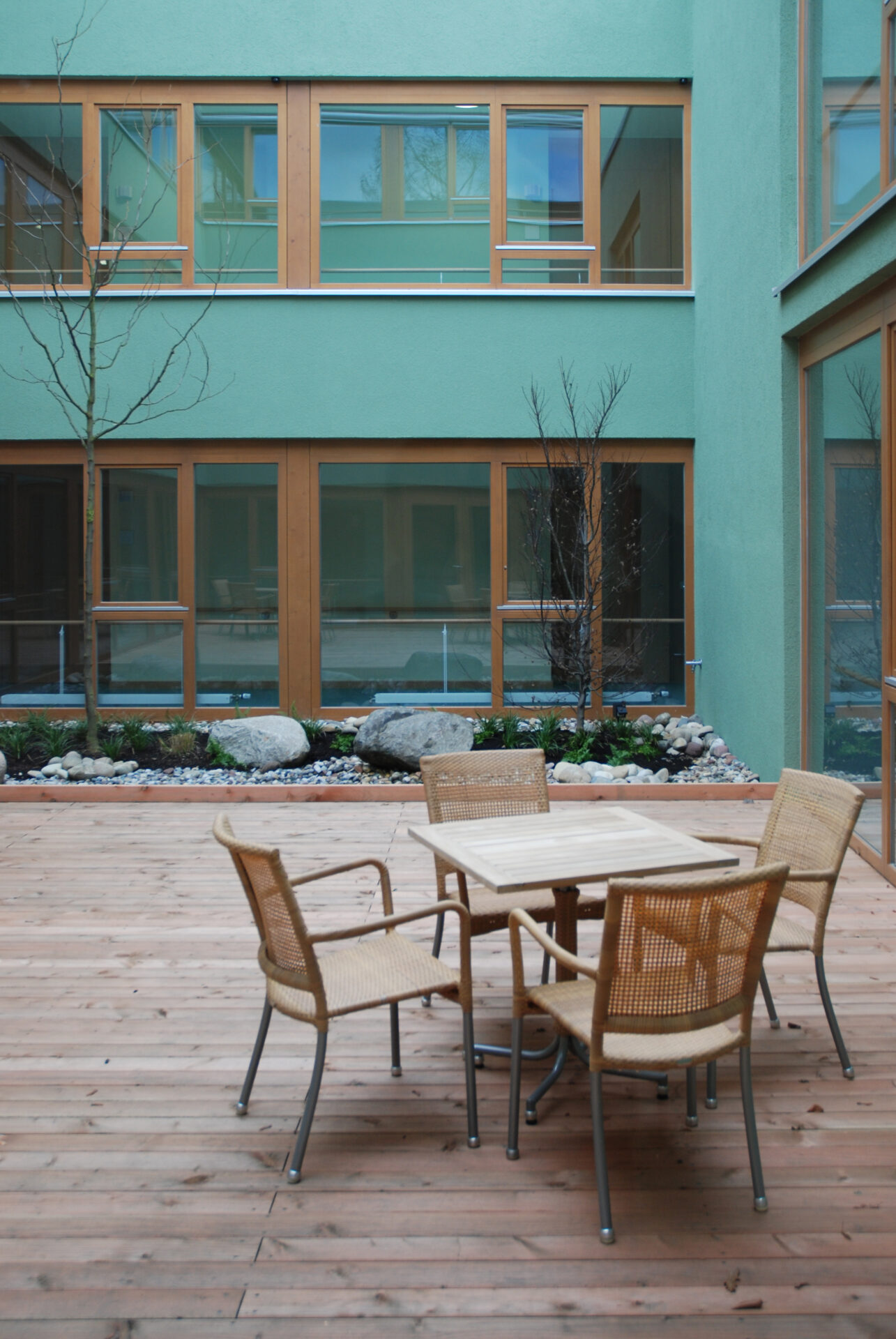 The project in the Karlsruhe district of Hagsfeld comprises a specialist dementia care centre with 43 beds and a community centre. There is a courtyard between the two buildings, which residents can use for relaxation or for festive occasions. The location of the building and the connection between the specialist care centre and the community centre allow older people to participate in community life and remain in their familiar surroundings and neighbourhood.