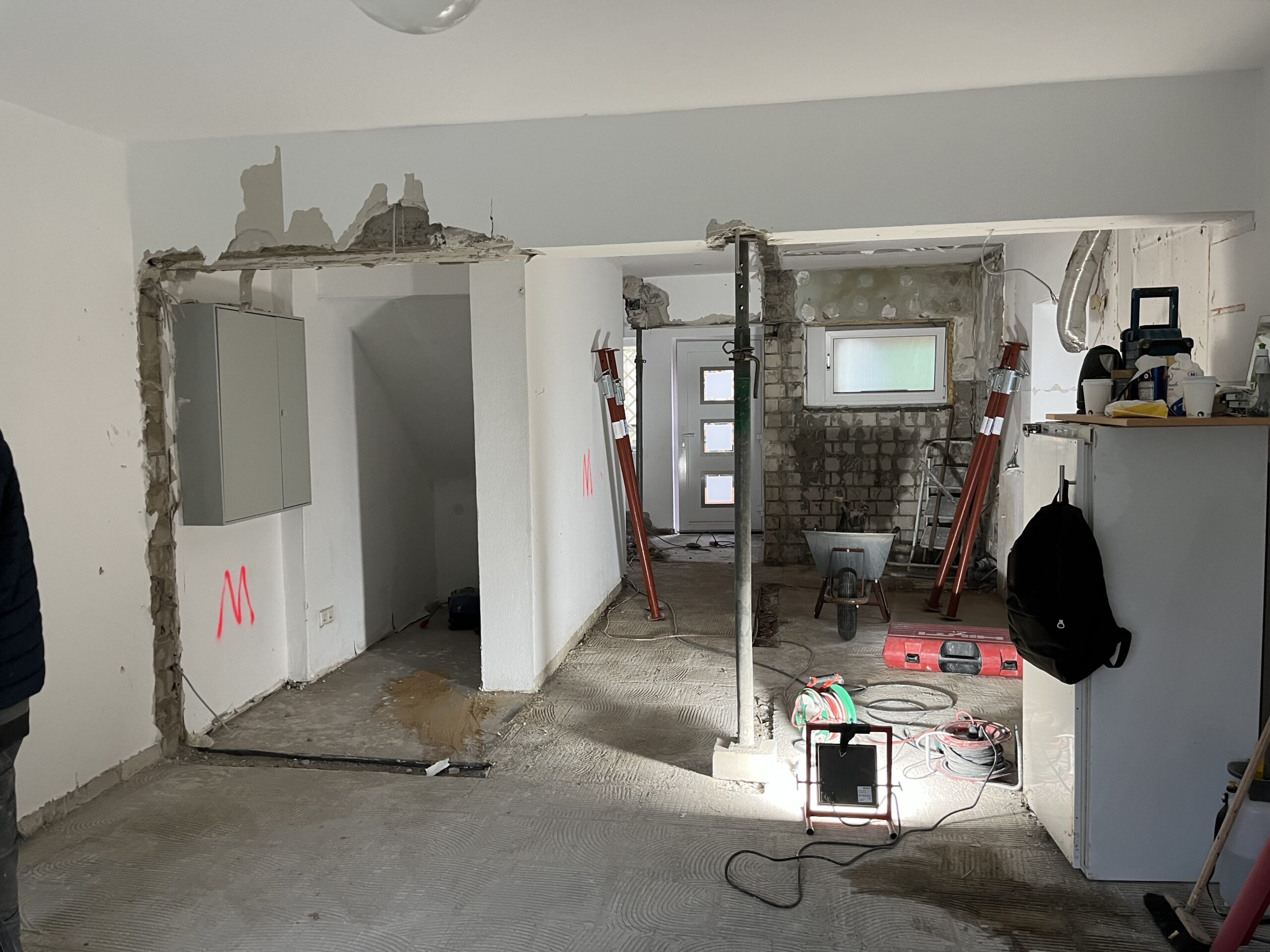 Remodelling measures include the demolition of walls and parts of the old floor slab, the