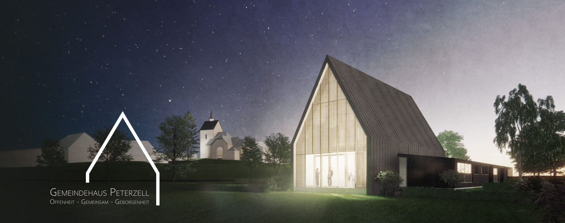 Der Entwurf spiegelt mit den beiden Archetypen Haus und Hof Elemente des Gemeindelebens – Offenheit, Zusammenkunft und Geborgenheit.