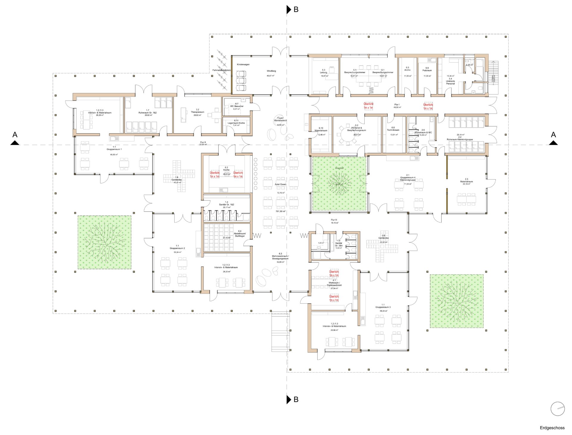Die Gemeinde Wüstenrot ist vorbildlich, was ihr nachhaltiges Energiemanagement und ihre ökologische Energieversorgung anbelangt. Die neue Kindertagesstätte Seewiesen wird zum Anlass genommen, die besondere Stellung der Gemeinde im Bereich Nachhaltigkeit baulich sichtbar zu machen. Nachhaltigkeit soll ganz bewusst nicht nur hinsichtlich des Energieverbrauchs verstanden werden. Vielmehr soll sich dieser Begriff auch auf soziale Nachhaltigkeit und damit die Pädagogik beziehen, auf die Verwendung von natürlichen Baumaterialien, den gestalterischen Ausdruck des Gebäudes, seine Funktion, die Einbindung in die Landschaft und die passive Gebäudetechnik. Bezogen auf die Materialverwendung bedeutet dies, dass mit Naturmaterialien wie Holz, Lehm, Stroh und Hanf gebaut wird.