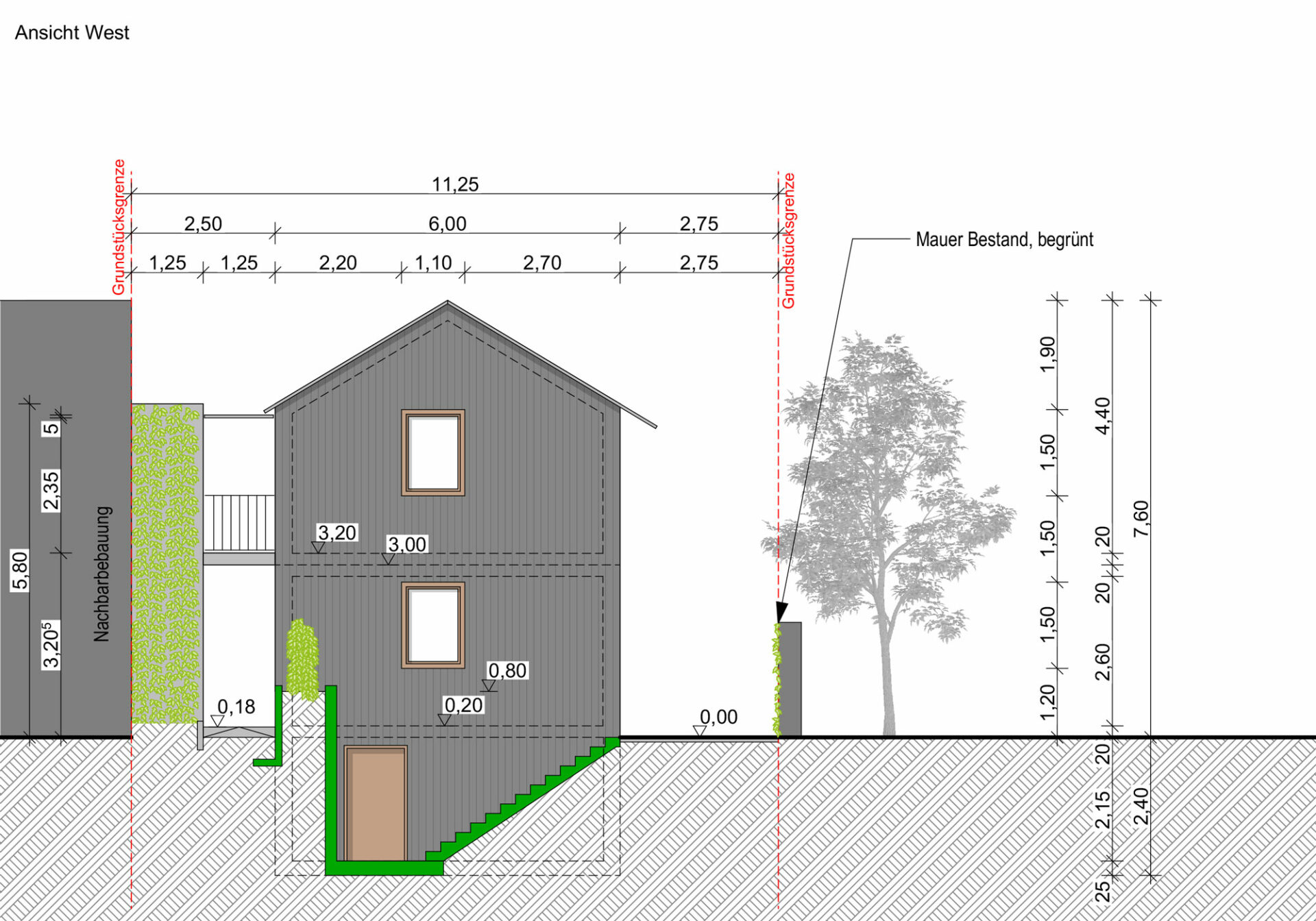 Die Wohnungen sind nach Süden orientiert und haben trotz der Hinterhoflage auf einem schmalen Grundstück einen Ausblick ins Grüne und viel natürliches Licht. Die Schaffung von ökologisch nachhaltigem Wohnraum stellt die große Qualität der Lösung dieser Bauaufgabe dar, wobei dieser den Bewohnern einen hohen Komfort und Lebensqualität gibt, ohne neuen Flächenverbrauch/neue Flächeninanspruchnahme.
