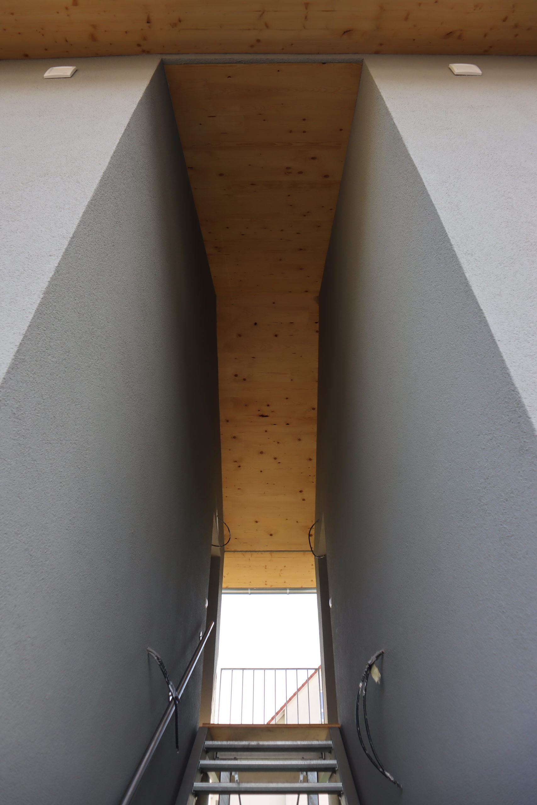 Die Holzbauweise ermöglicht es im Hinterhof diese Nachverdichtung schnell und effektiv mit hohem Energiestandard zu erreichen. Die kurze Bauzeit des Holzbaus entlastet die Nachbarn, kann mit wenig grauer Energie hergestellt werden und ermöglicht einen schnellen Bezug der Wohnungen.